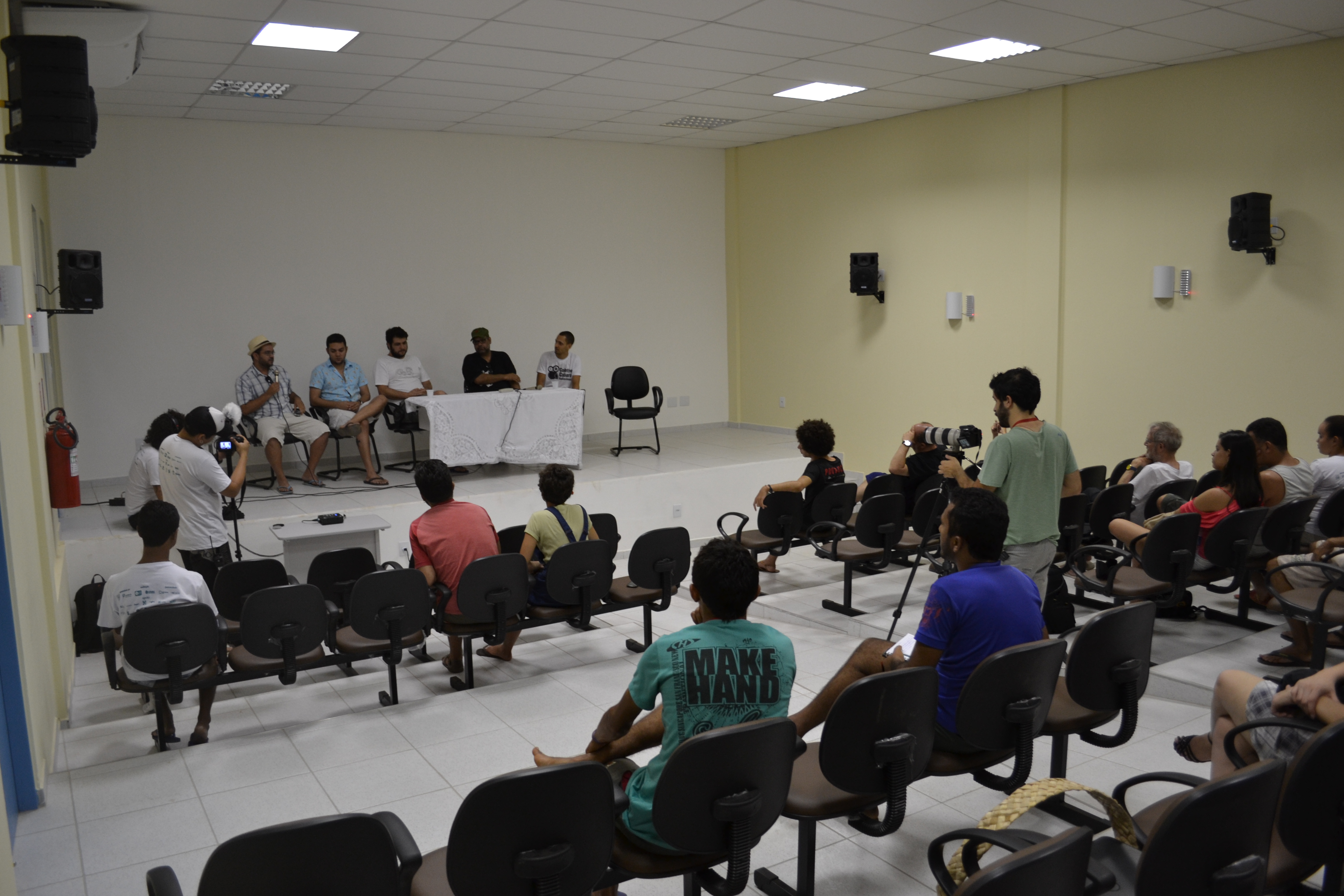 “A Produção Audiovisual no Nordeste” foi o título da roda de conversas entre público e cineastas, porém antes disso foi aberto o evento com Júlio Cavani, diretor do curta “História Natural”, e com o pessoal do Coletivo Caboré de onde surgiu o “Abraço de Maré” dirigido pelo Victor Ciríaco.