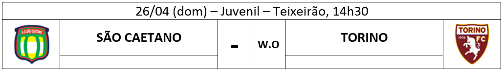 Pela categoria juvenil o Torino provocou o W.O apresentando apenas dois atletas para a partida e com isso terminou na lanterna do grupo. Vejamos a síntese da partida: