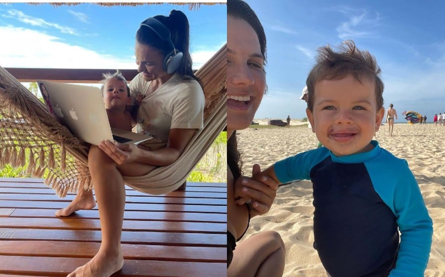 “Meu gostoso em Gostoso”, declarou a mamãe ao posar de rosto colado com Rayan. A campeã não se conteve com tanta fofura do caçula e publicou mais fotos do seu bebê posando na praia só de fralda em um dia típico de verão: sol e céu azul. Kyra Gracie ainda revelou: “Que dia Gostoso. Conhecendo mais um lugar lindo no Brasil em família”. A esposa de Malvino também mostrou o grude do pequeno com ela, estando sempre pertinho da mamãe, mesmo quando ela resolve questões do trabalho a distância pelo notebook.