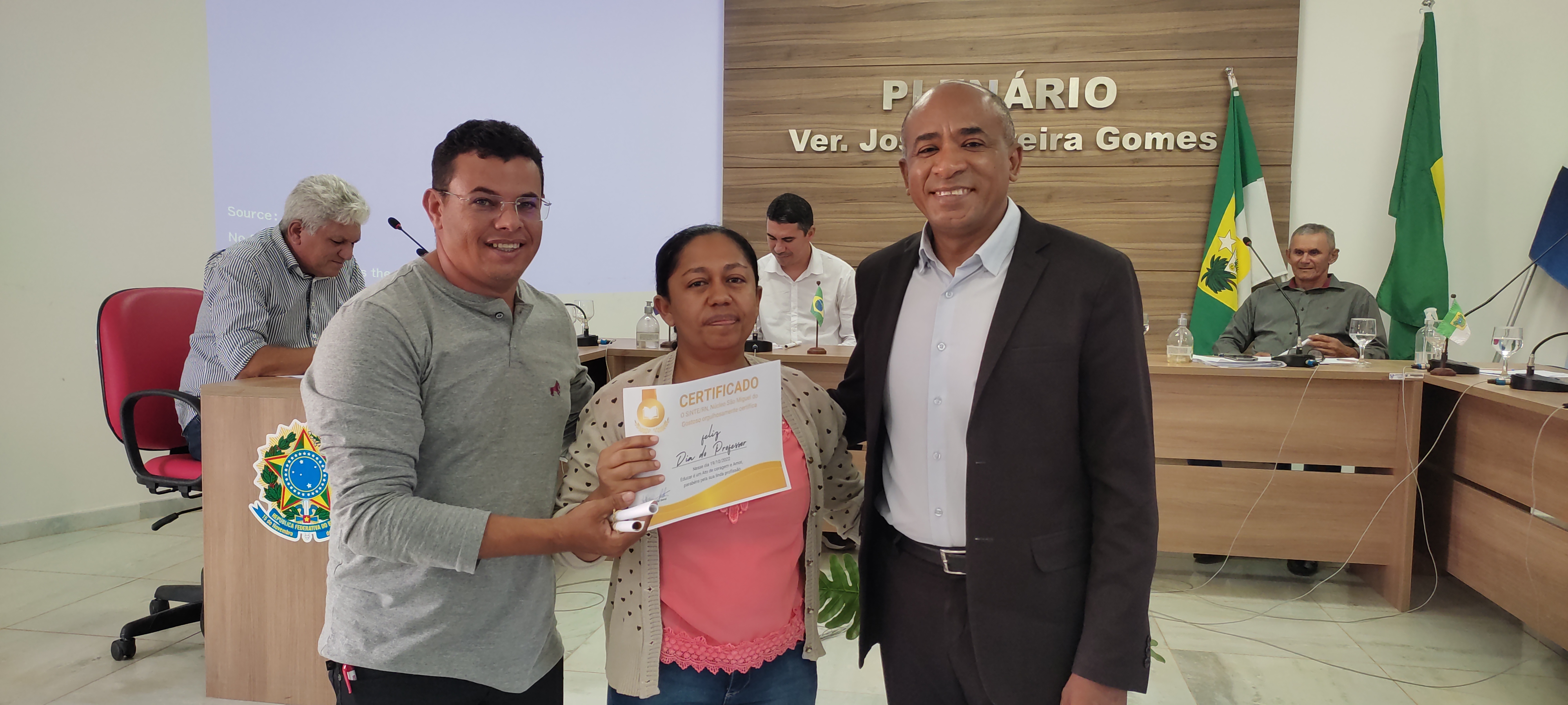 A Câmara de Vereadores de São Miguel de Gostoso, teve um ida atípico nessa quarta-feira (19) com casa cheia de um publico especial. A sessão solene em homenagem ao Dia do Professor articulada pelo SINTE/RN trouxe representações diversas escolas do município. A sessão foi presidida pelo Vereador Luiz Neto, vice-presidente da casa, e as homenagens foram conduzidas pelos coordenadores do Núcleo do SINTE de São Miguel do Gostoso, os professores Elexsandro Menezes e Ricardo André.