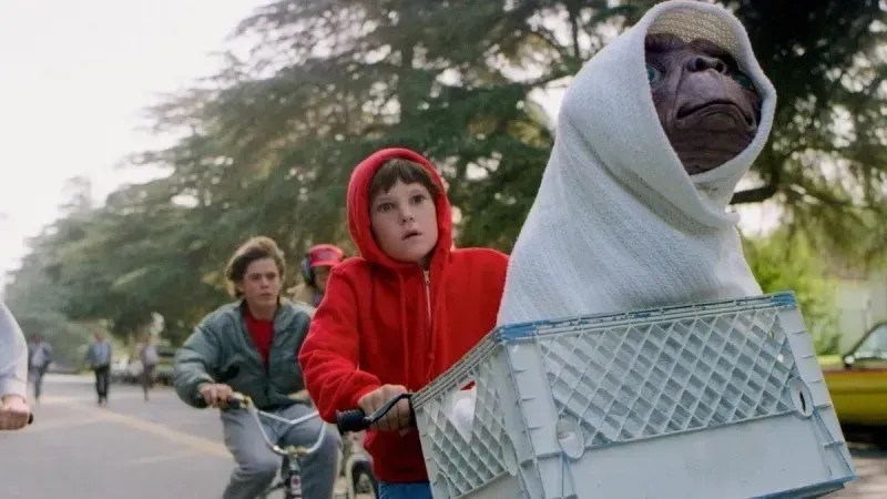 O longa conta a história de um garoto chamado Elliott (Henry Thomas), que encontra um ser vindo de outro planeta, os dois constroem um laço intenso de amizade, porém o pequeno alienígena deseja voltar para casa enquanto o Governo dos Estados Unidos quer capturá-lo. E.T. O Extraterrestre é o sétimo filme que Steven Spielberg dirigiu, tem o roteiro com assinatura de Melissa Mathison (na época namorada de Harrison Ford) e a fotografia de Allen Daviau.