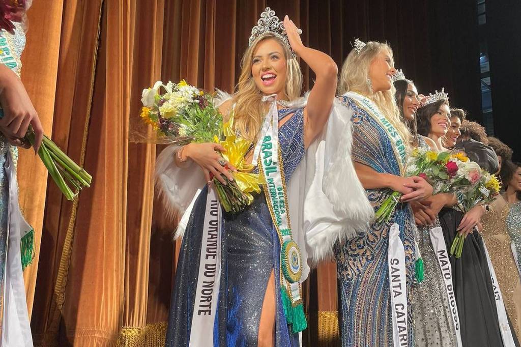 Na imagem temos Beatriz Goulart, uma Miss RN, que venceu o Miss Brasil e representou o país no Miss Universo em 2023. Assim como ela, outras potiguares também venceram o Miss Brasil e representaram o país no exterior, como Valéria Bohm, Deise Benício, Manuela Alves e Cristina Braga.