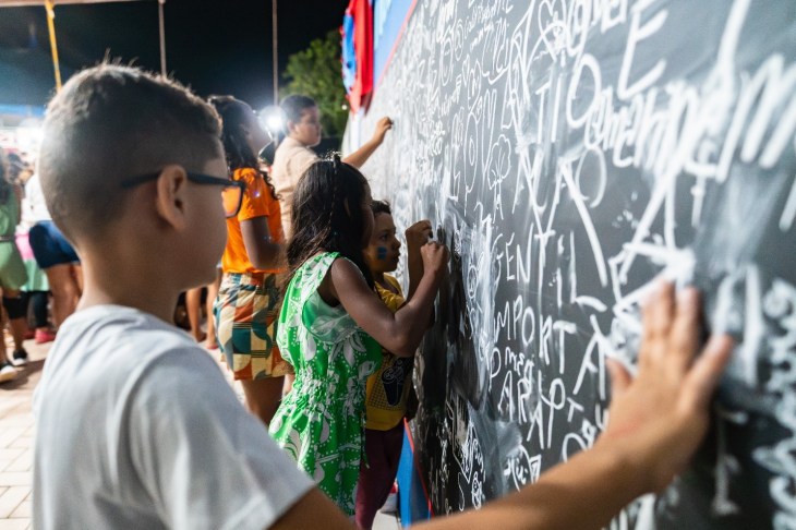 Ao adentrar ao Circo Casa Pé na Mala, local onde tudo acontece, uma grande lousa te convida à reflexão: “O que te faz sorrir?”. Todo esse cuidado e dedicação é colírio em tempos de escassez de pausas e excesso de estímulos, e é aqui, que os mais de 120 voluntários (entre adultos, jovens e apoiadores) se encontram para construir o Festival, durante os meses que o antecedem, uma noite de muita arte, sorrisos e gentilezas.